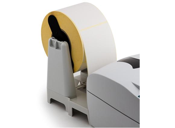 Many clam shell design label printers have a label media supply slot to the rear of the printer. If your printer has this slot then you could feed labels externally from our Label Roll Holder. The slot must be clearly accessible and not in the printer’s base, it must also be between 40mm and 100mm above the base of the printer. If your printer has such a media slot and your manual does not mention any external media restrictions simply add a Label Roll Holder to your label order for only £54.00.