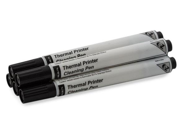 Pack of 5 printhead cleaning pens. Use regularly (after each ribbon change) to reduce build up on the printhead reducing the risk of overheating damage to the heating elements and ensuring even print quality across the width of the print head. The cleaning pens are suitable for all thermal printers.