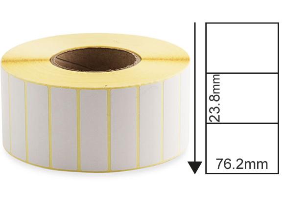Plain white, semi-gloss labels finished in a wide edge leading format with permanent adhesive. 5000 labels per roll on a 76mm core and a maximum external diameter of no more than 203mm. Suitable for a wide range of printing requirements including, Barcodes, Product labels, Storage information etc.